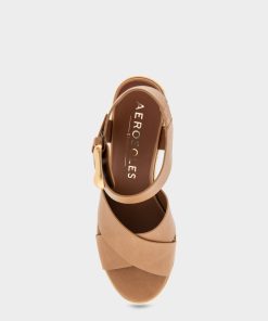 Aerosoles Comfortable Women’s Platform Sandals In Tan Burnished Leather | Tan Burnished Leather | Women’s Shoes